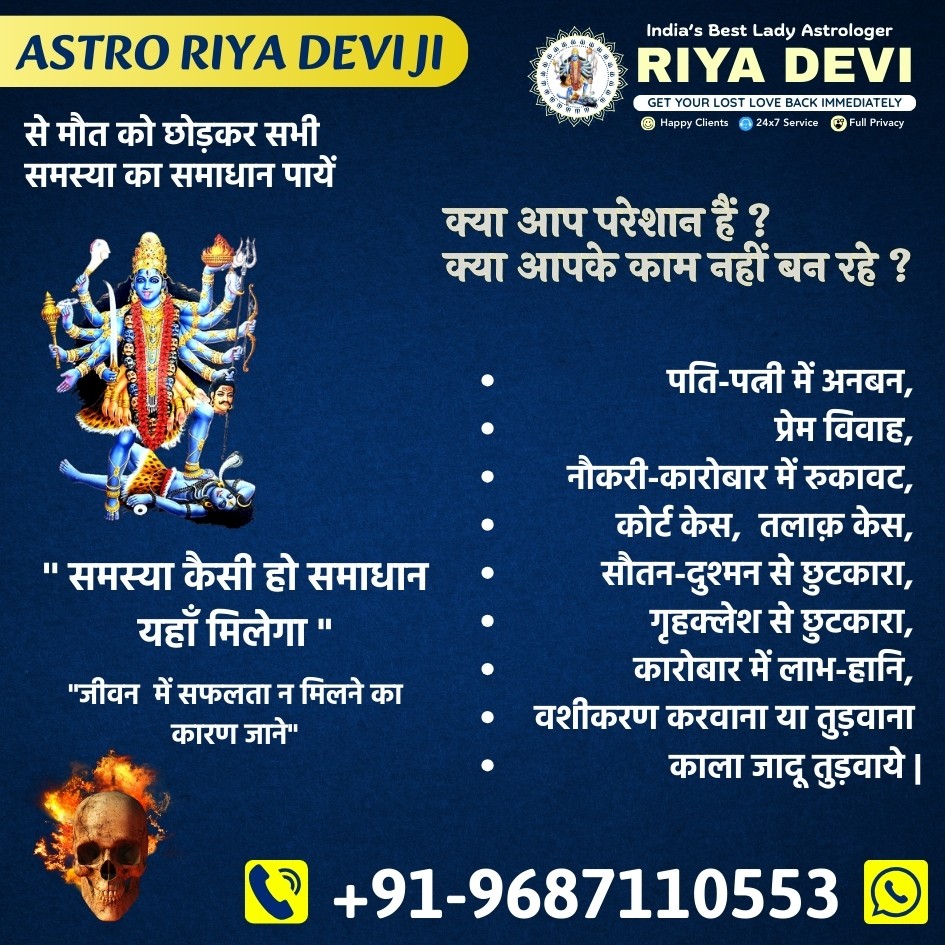 Lady Astrologer Riya Devi Ji., An competent Astrologer uses his knowledge to assist people in every country on earth. Because she has a passion for vedic astrology, she is motivated to use it to help others. Everyone today is a member of a race, which leads to difficulties for them. She is merely making an effort to help others and point them in the right route. She just predicts the future and offers suggestions for difficulties.